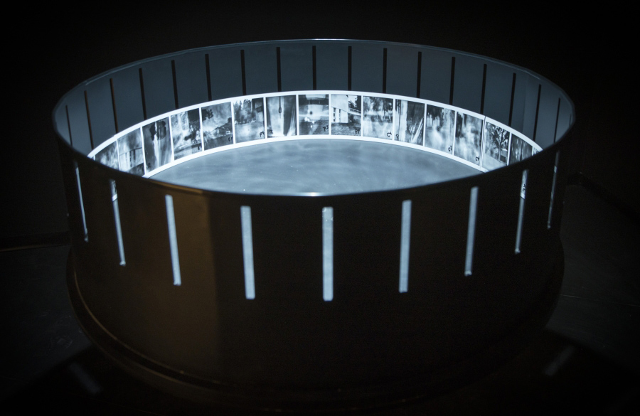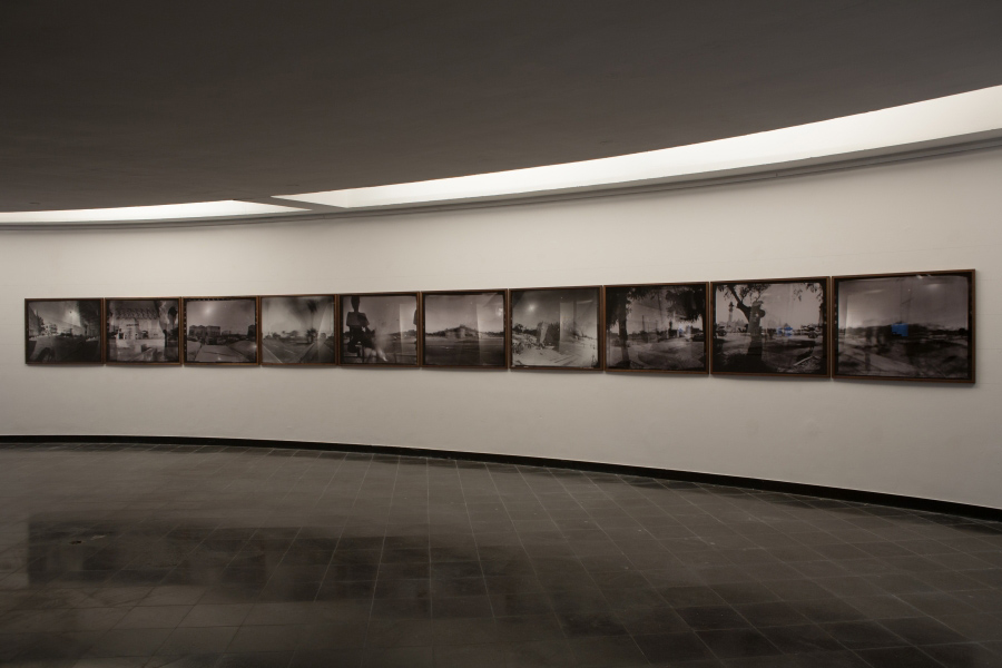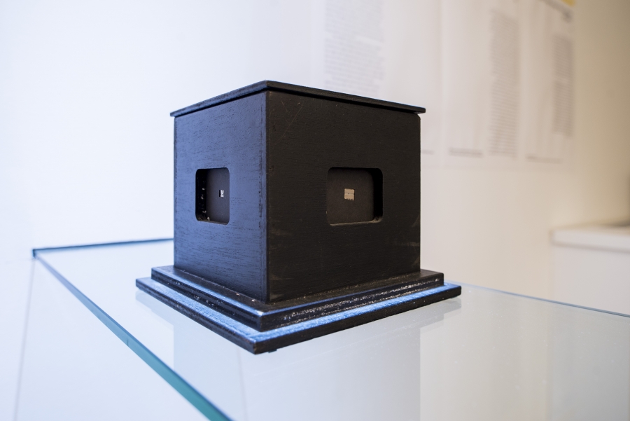 The exhibition is constructed around a dozen cameras built by Aïm Deüelle Lüski from the end of the 1970s until today. These unique cameras evolved from an exploration of the traditional camera and an effort to deviate from it. This double approach enfolded in Deüelle Lüski’s cameras is articulated in the exhibition; on one hand, these cameras criticize the mono-focal vertical photography, which grew with capitalism and was fixated as a neutral visual instrument used to gaze at the world from outside. On the other hand, horizontal photography is developed and presented as an alternative framework, where the traditional divisions between outside and inside, and between photographer, subject and spectator are destabilized.