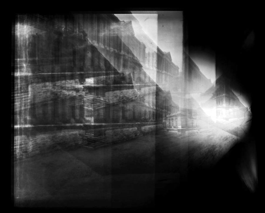 Each camera built by Deüelle Lüski is an attempt to rethink a specific element of the traditional camera: viewfinder, camera obscura, shutter, pinhole, type of surface, position of the negative, and to broaden its possibilities in unforeseen directions. Those are discovered when the act of photographing is not subject to a single purpose – capturing sharp images with clear and identifiable objects – as in the case of vertical photography. By isolating and exploring each element thoroughly, Deüelle Lüski offers a new understanding of the act of photography. The public is invited to watch closely the visual instruments created by Deüelle Lüski, their different modes of functioning and uses, the varied types of photographs they produce, the nature of the existing regime they reveal and the variety of possibilities opened once this scopic regime is not embraced as the sole possible option. Deüelle Lüski’s cameras are somewhat iconoclastic instruments. They do not shatter one image or another, but rather the preconditions for producing identifying and identified images.