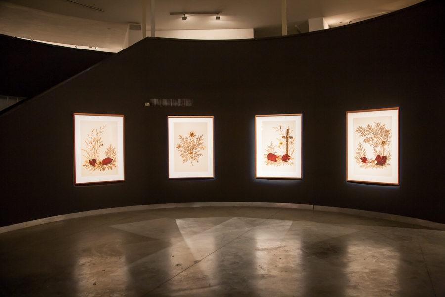 Furthermore, it is not surprising that sculpture, a medium that heavily relies on having three dimensions, is almost entirely absent from the exhibition. In its only appearance, three-dimensional objects also refuse to submit to exact dimensions by growing out of the photograph, withering, dwindling, and decomposing.