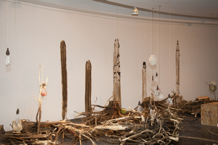 The island, as a concept, vacillates between a wild fantasy about freedom – a dream of a possible utopia and splendid isolation – and the destructive potential of its boundaries, which can transform it into an oppressive prison. The primal, animalistic, communal and political aspects of the island were revealed to viewers during the ongoing process of mounting the exhibition.