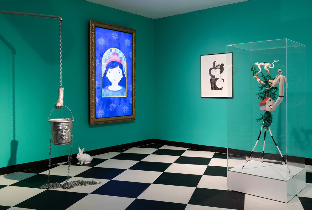 Through the Looking-Glass is a children’s art exhibition inspired by Lewis Carroll’s book – Through the Looking-Glass and What Alice Found There. In the book, which continues the adventures of “Alice in Wonderland,” Alice crosses to the other side of the mirror and finds a parallel universe – a strange and wonderful world where inanimate objects come to life, animals and objects can talk, and everything happens on a chess board. There she discovers that everything she knows can be different, strange, and topsy-turvy.