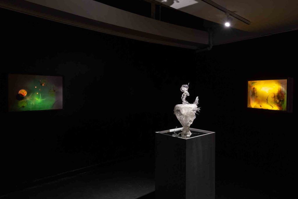 The exhibition searches for the art of the New Age, with the understanding that it is still present and its manifestations are only expanding towards the technological and virtual realm. The various artworks reveal that digital cyberspace, which turns people into mere consciousness, summons the emergence of the disintegrated body. Not the ‘Body Without Organs,’ but rather organs without a body: eye, finger, hand, people detached from their surroundings, floating in space or emerging from the darkness.
