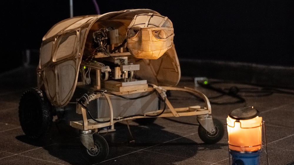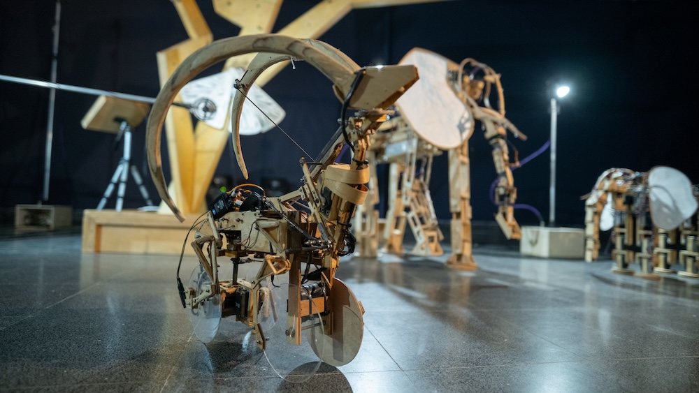 Safari at the Museum: A Journey through the Robotic Animal Sanctuary, Amit Drori’s solo exhibition, offers a rare opportunity for a close view of mechanical animals created for the stage. Bat Yam Museum of Art’s distinctive round building outlines a trail that leads visitors to the depths of an artificial wildlife reservation. The reservation is populated by mechanical sculptures constructed with anatomical accuracy in an almost extinct craftsmanship that brings them to life with movement and human expression. The sound and lighting that envelop the safari complete the museum’s transformation into a playful and imaginative environment.
