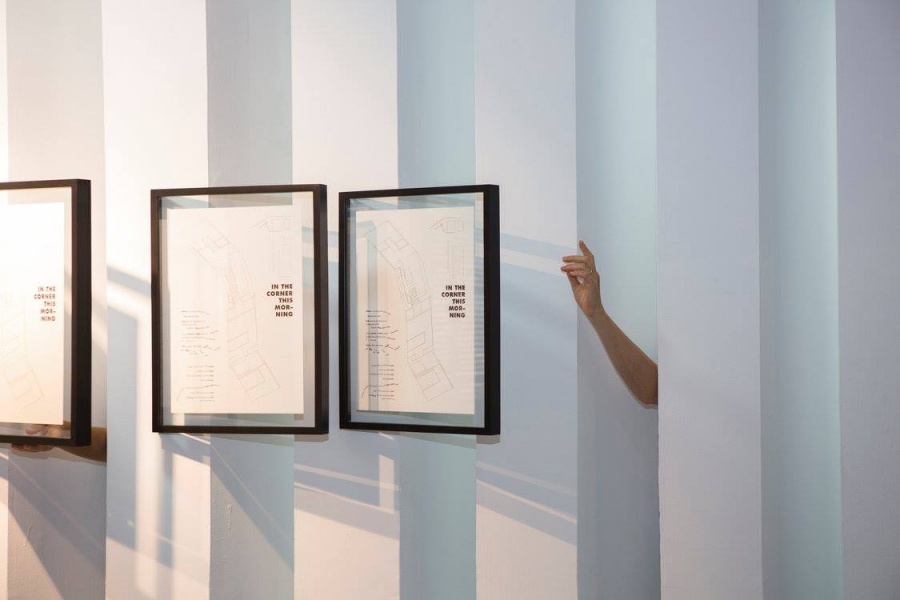 Beside him, is the installation of Hila Laviv and Dana Yoeli, ‘In the Corner This Morning’, an installation poster inspired by the utopian rooms designed by the Soviet artist El Lissitzky (1890-1941). The visitors are invited to take with them a poster with a paper self-preparation model and are encouraged to touch, cut, fold, paint, and decorate in the handicrafts tradition of DIY (Do it Yourself). In this way, the painting becomes an object.