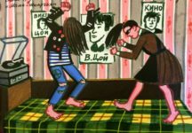 a series of new paintings titled Back in the USSR, You Don’t Know How Lucky You Are. The paintings depict their childhood in the Soviet Union, alongside original paintings they made as children. This is the first time these works are exhibited. In the next installment, which will open in June 2016, Anna Lukashevsky – the fifth member of the group, will present new paintings that respond to the group’s current display.