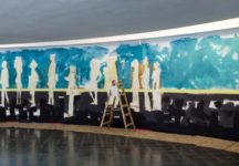 Jonathan Gold presents a mural depicting a line of people – a work in process that entails collaboration with the audience.